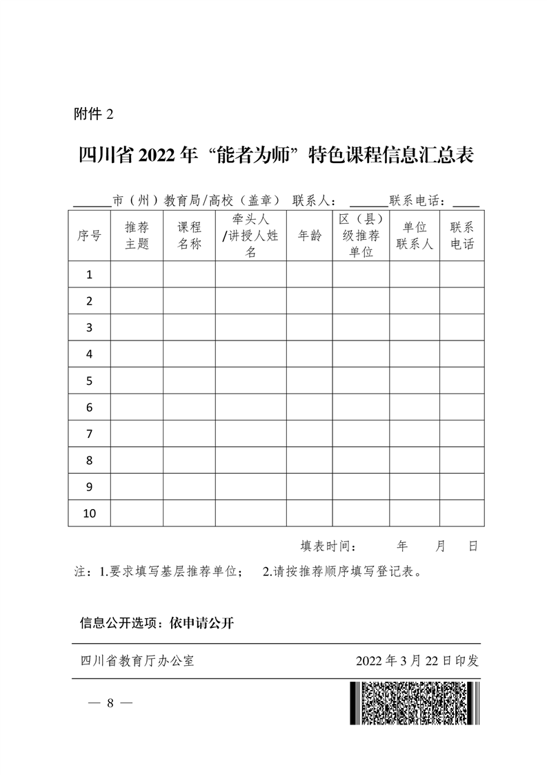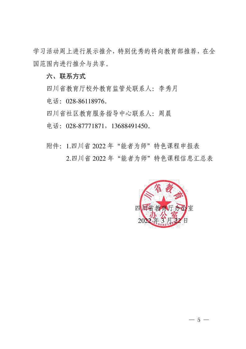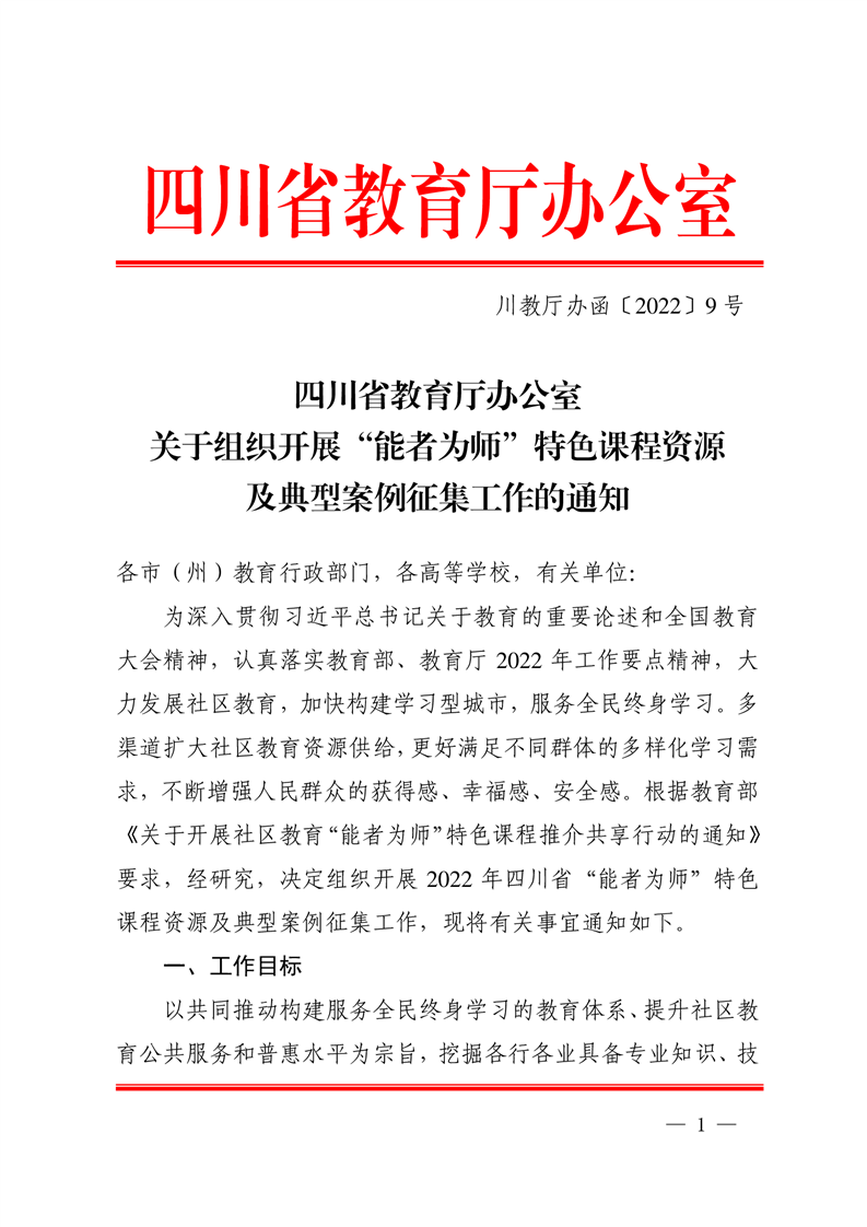 四川省教育厅办公室关于组织开展“能者为师”特色课程资源及典型案例征集工作的通知