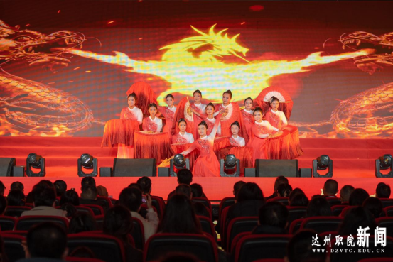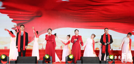 第二篇章“建功·奋楫扬帆启新程”中,《孤勇者》唱出了教育工作者在平凡岗位上的坚守与不凡,深沉而有力的和声直击人心。三句半《奋进达职向未来》,以诙谐幽默的语言、铿锵有力的节奏,道出了学校赖以发展的特色底蕴以及对未来发展的坚定信心。集体舞串烧《欢乐炫舞》如彩虹流转,焕发校园蓬勃生机。