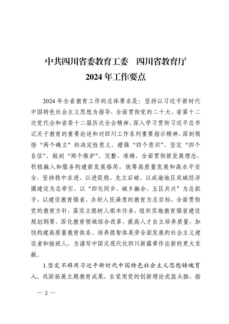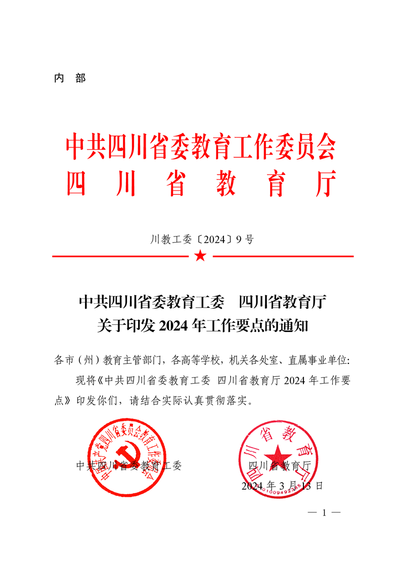 中共四川省委教育工委_四川省教育厅关于印发2024年工作要点的通知