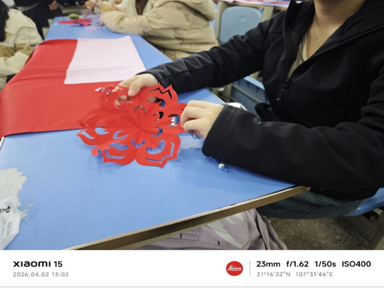 清明至,古韵浓,文脉传。为深入推进高校公寓“一站式”学生社区建设,将传统文化育人融入社区生活,让传统节日文化浸润青年学子心灵,在慎终追远、缅怀先辈、万物生发的清明时节,达州职业技术学院望犀校区于2026年4月2日成功举办“剪纸民俗承古韵,香囊清明寄寓心”手工主题活动,以传统手工艺为载体,搭建文化传承与社区交流的桥梁,吸引了众多学子积极参与、共赴这场文化之约。